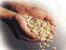- in einer Pelletpresse werden unbehandelte Holzreste (Hobelspäne, Sägespäne) verdichtet und zu kleinen, zylindrischen Röllchen gepresst